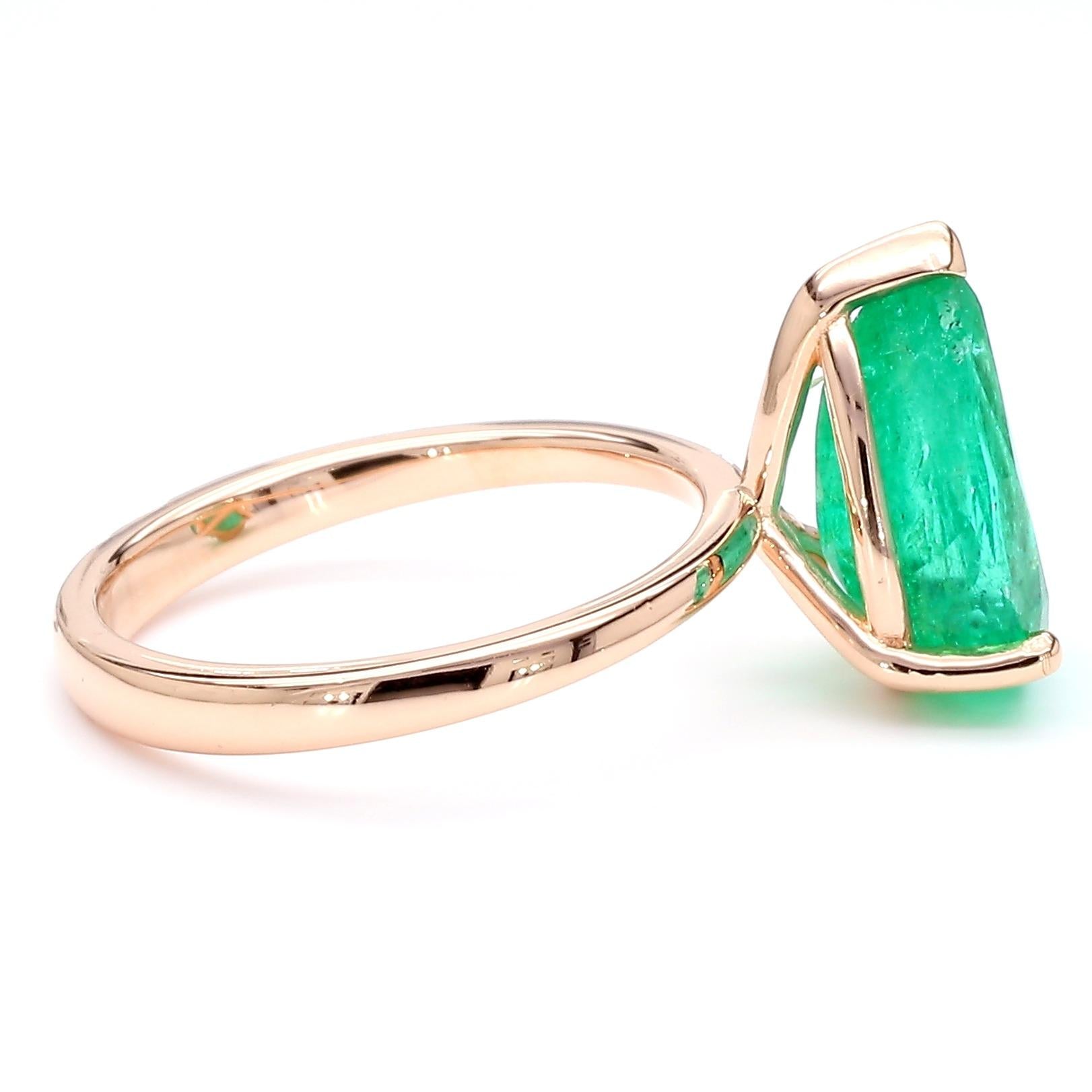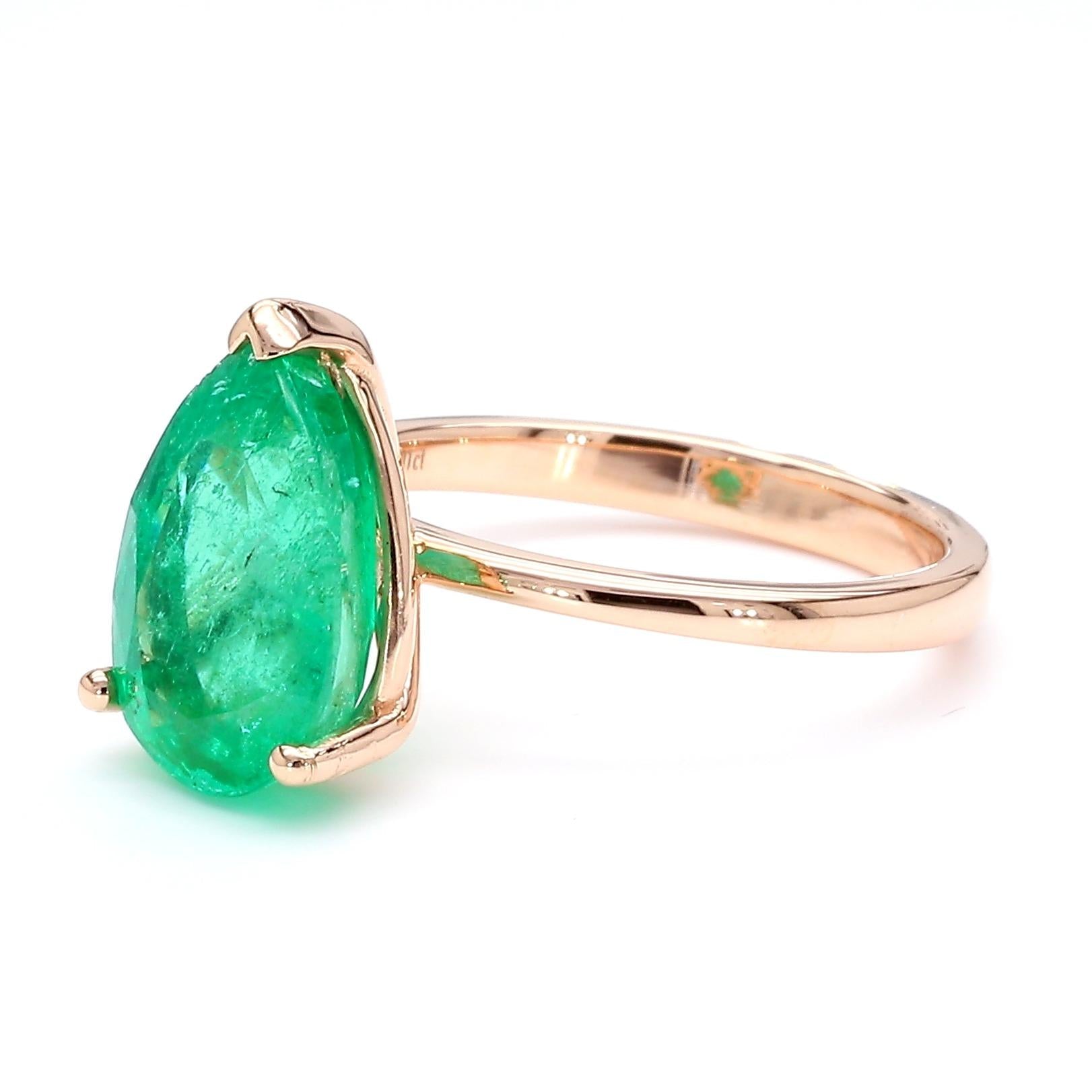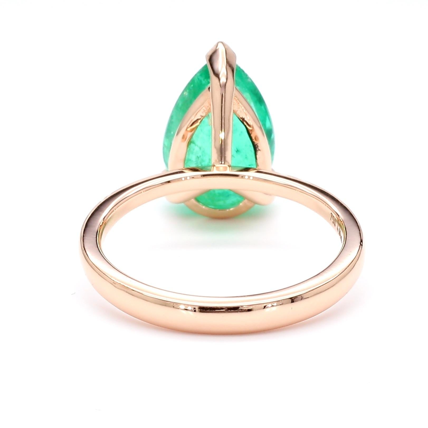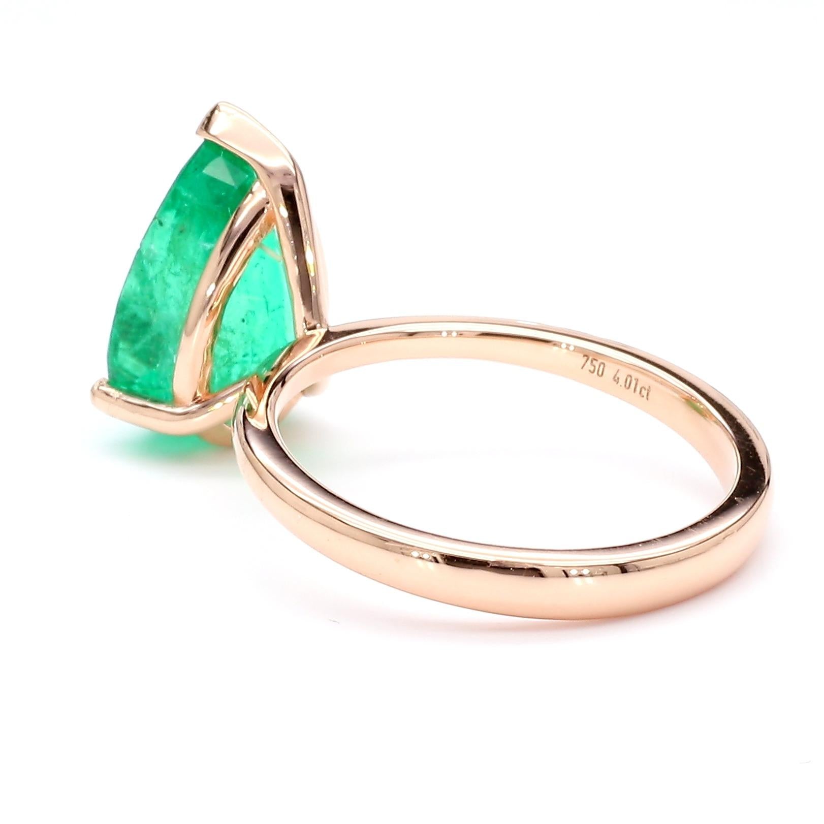 4.01 Carat Pear Cut Rich Green Emerald Solitaire 18K Rose Gold Ring