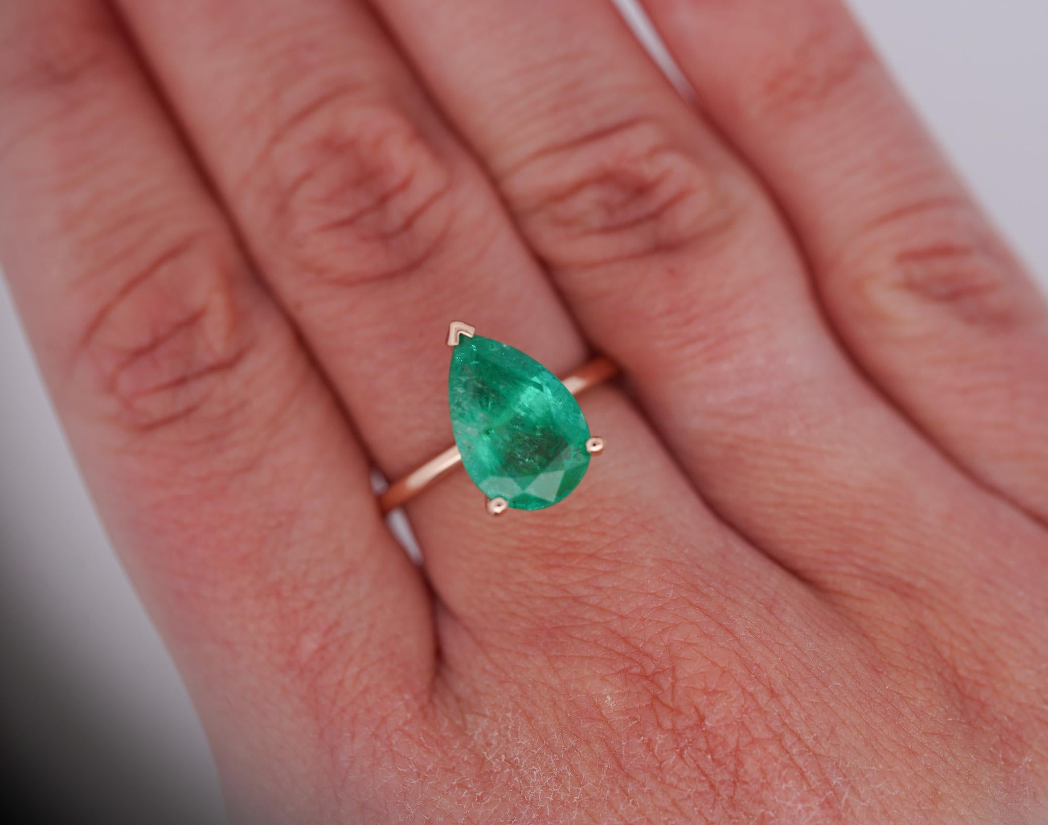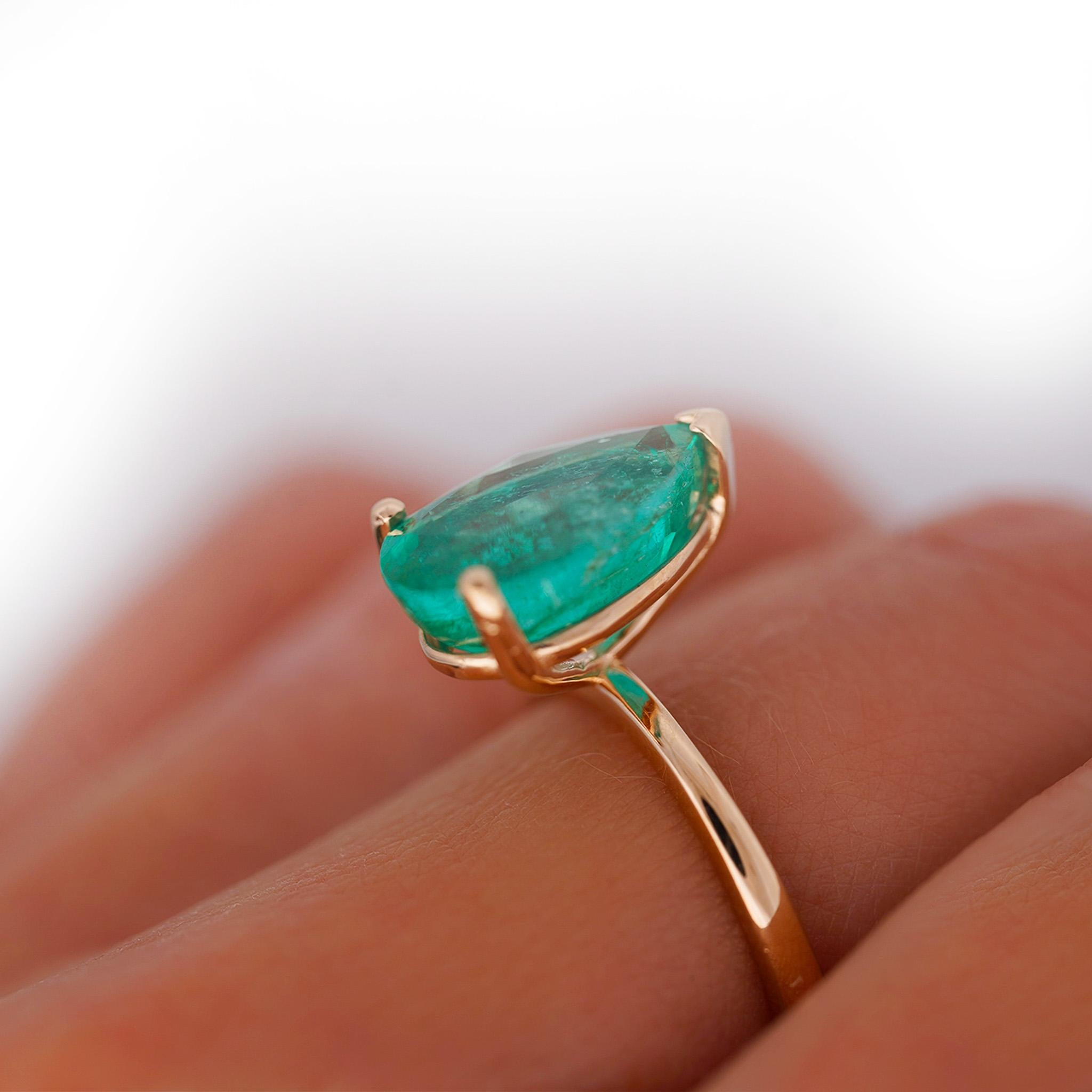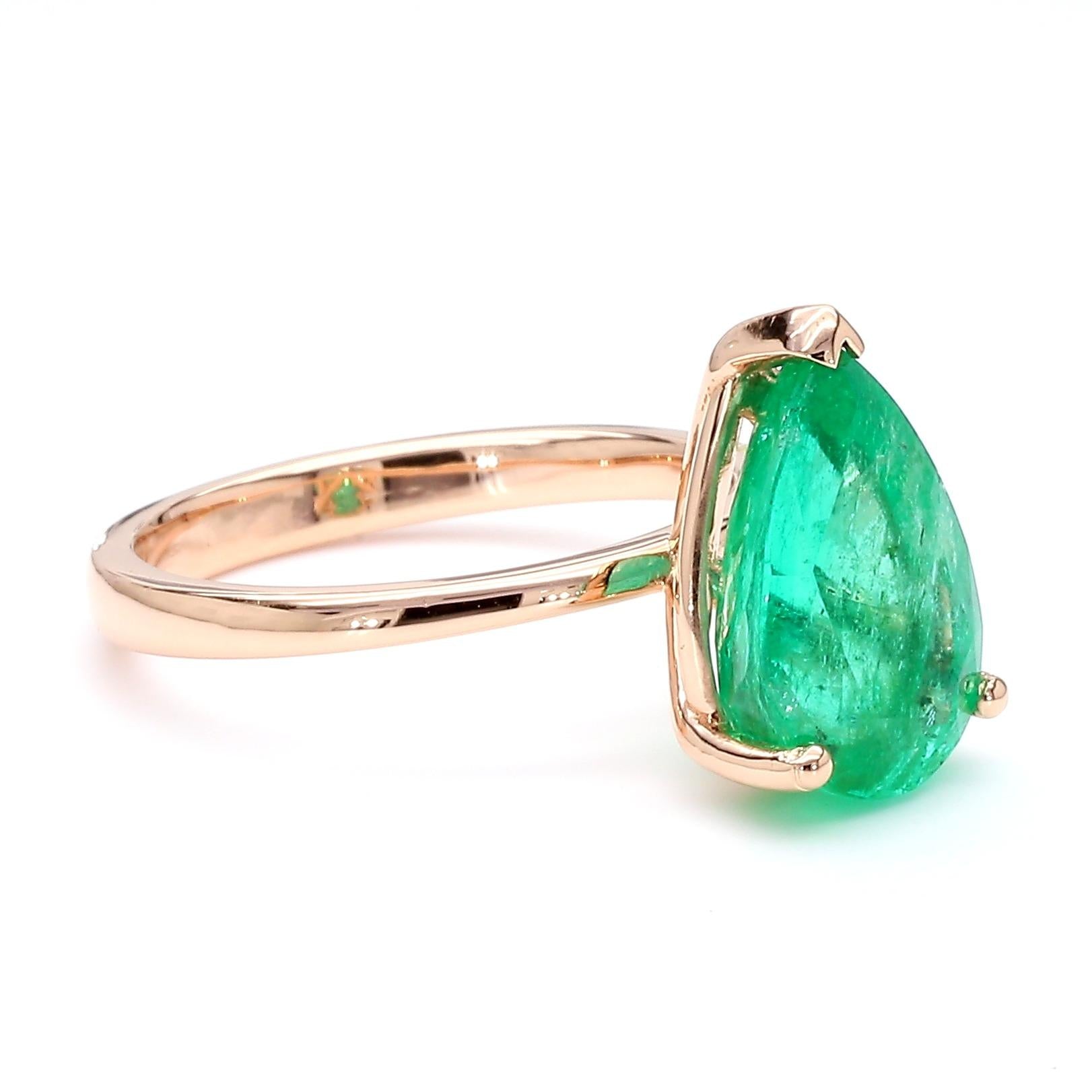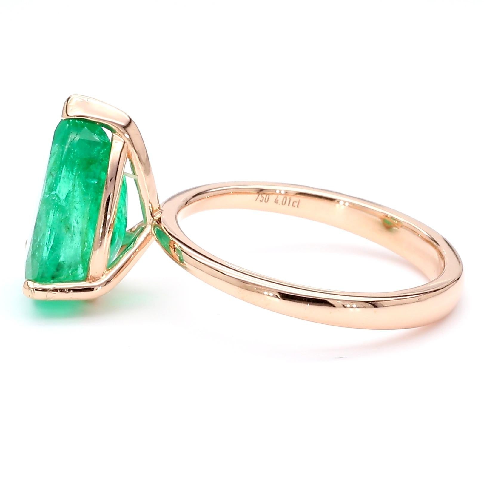 4.01 Carat Pear Cut Rich Green Emerald Solitaire 18K Rose Gold Ring