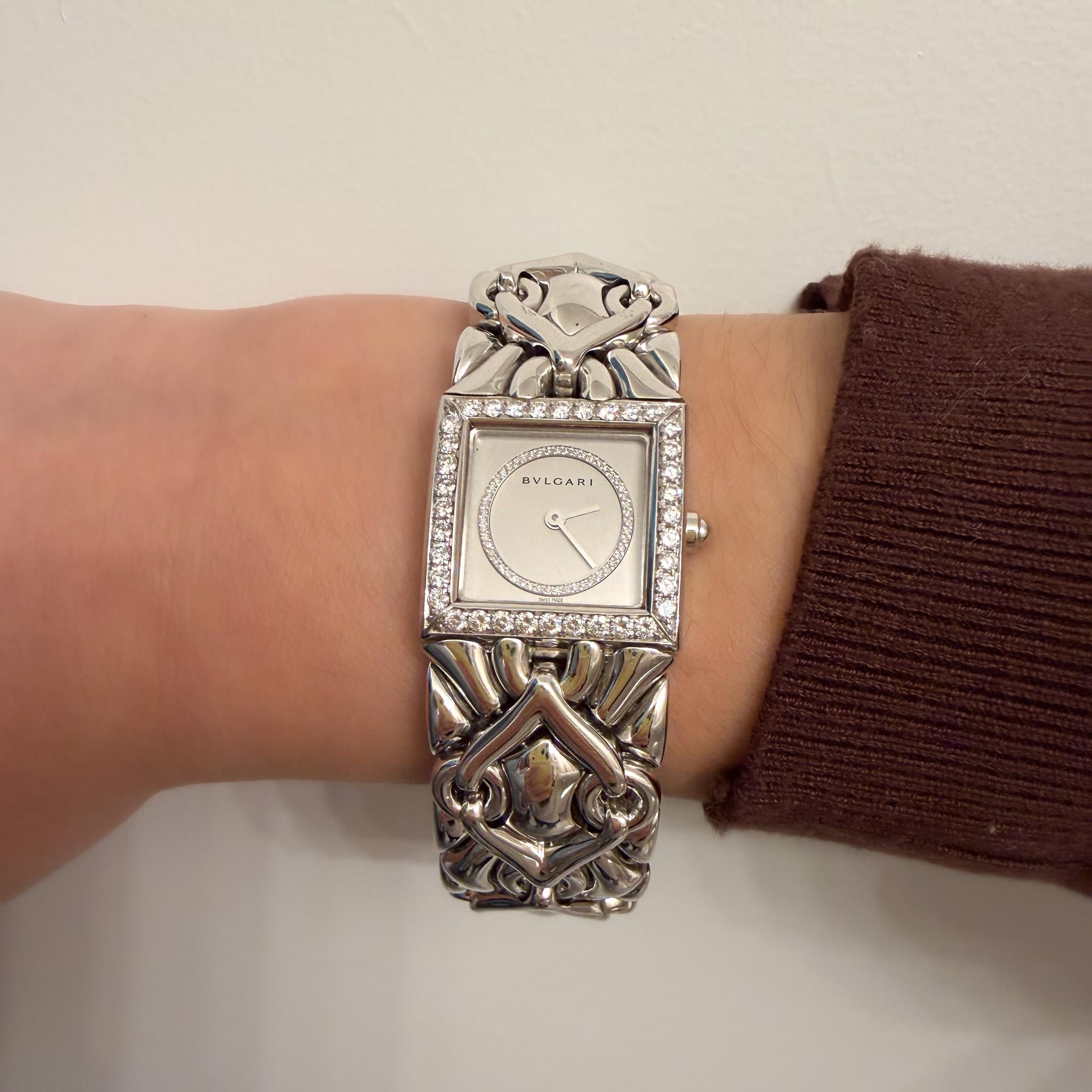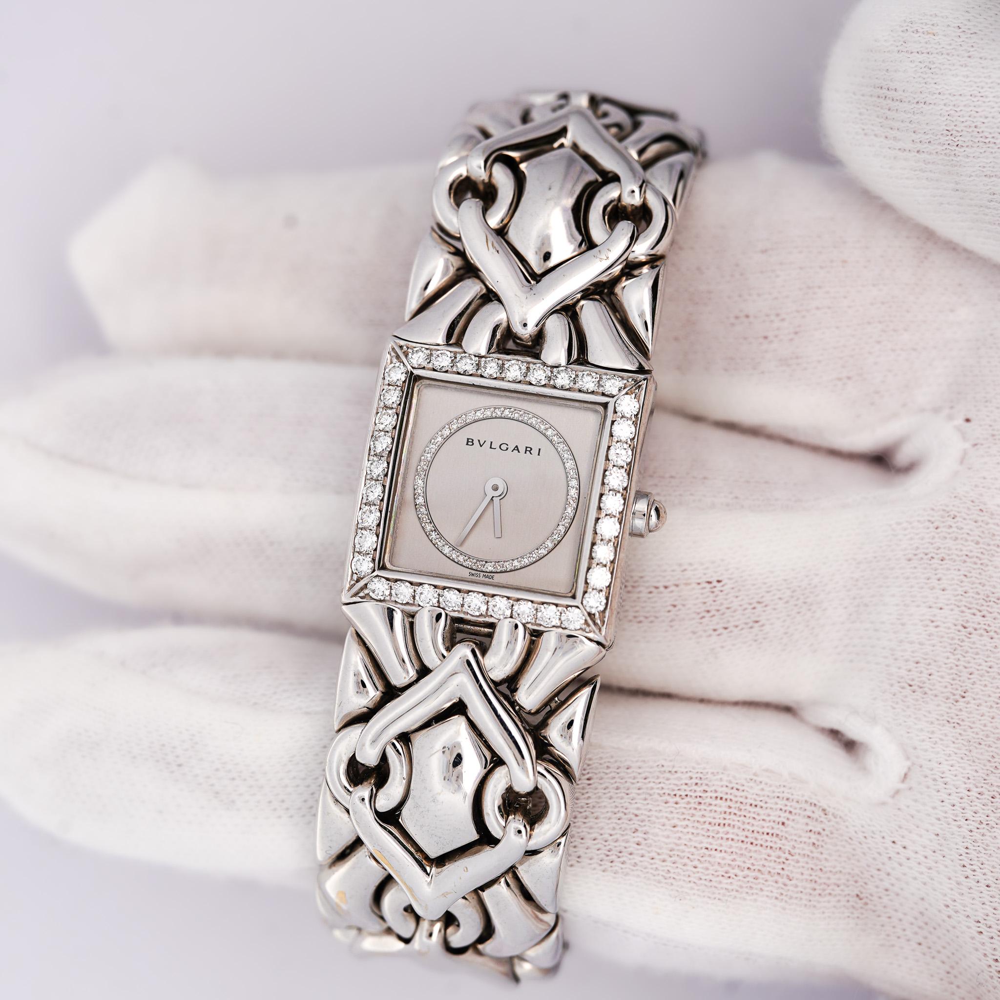 Bvlgari Trika Diamond 18K White Gold Integral Bracelet Square Watch Full Set